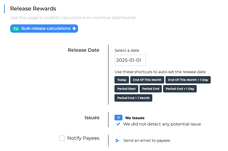 The customized release date updates instantly on incentive dashboards.