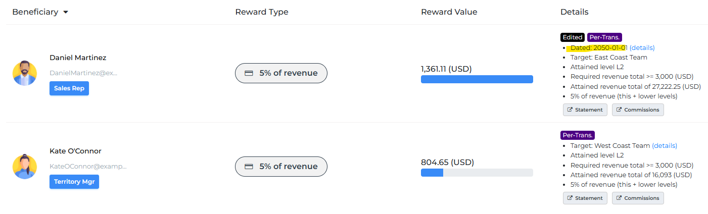 Marking A Reward As Pending On Incentive Dashboards - Period Statement