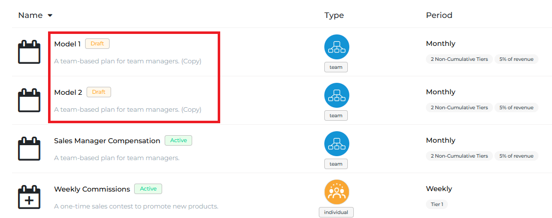 - Clone plans, alter tiers / rates / quotas, calculate payouts using existing sales data