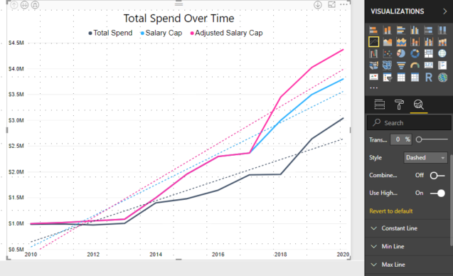 Here is an example where spend was analyzed under different models with the Analytics pane: