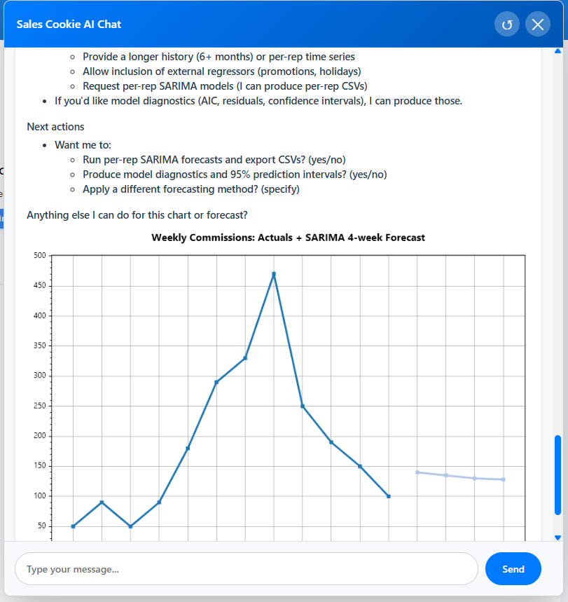 - Ask the Sales Cookie AI to analyze trends or generate forecasts