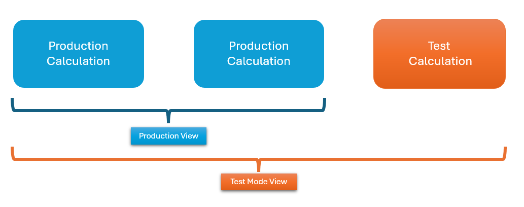 Test calculations are only visible to other admins with test mode enabled.